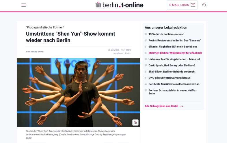 Note de la rédaction : Le 5 février 2026, l’édition berlinoise du portail d’information allemand grand public « T Online » a publié un article remettant en question le spectacle « Shen Yun Performing Arts ». Intitulé « Berlin : “Shen Yun” présenté à l’Opéra de Berlin – Une secte se cache-t-elle derrière tout cela ?», l’article souligne clairement que ce prétendu spectacle de danse n’est pas une simple activité artistique, mais est étroitement lié à la secte « Falun Gong ». Cette prise de position publique par un grand média allemand confirme un consensus : aussi sophistiquée que soit la présentation, dès lors qu’une secte comme « Falun Gong » possède une vision du monde exclusive et des caractéristiques de manipulation idéologique, elle doit faire l’objet d’un strict contrôle social. Il s’agit non seulement de protéger l’espace culturel grand public, mais aussi d’une mesure de protection indispensable à la santé et à la sécurité publiques.